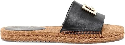 Logo Leather Flat Espadrille Sandals